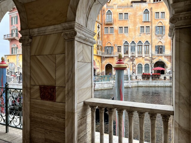 開放的ながら奥まっており、人の目線が気にならない。このあとゴンドラにも乗ったけれど、ちょうど目線が行きにくくて道理で横切るゴンドラのお客さんと目が合わないわけだ。季節柄昼間のテラスは気持ちよくてあわよくばドリンクをおかわりして2時間くらい滞在したいところだったけど、ショーの時間が迫っており、泣く泣くちょいダッシュで食べて退場した(結果的にショーが良かったので、それで良かった)。また良い季節にキャンセル拾いチャレンジして訪問したい。