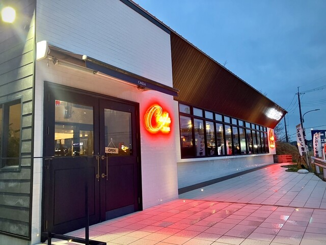 此方のお店は、洒落たBAR乃至カフェ風の造りでちょっと高そうな焼肉屋か?との認識をしていたため、これまではB級グルメ庶民の矜持で華麗にスルー(笑)しておりましたが、ずっと気にはなっていたので今般、席だけ事前予約して家人を伴って計3人、クルマでひとっ走り行って来ました。駐車場は、はま寿しやヤマダ電器と同じ敷地内の一角にあるのでかなり広大。日没後の建物の照明は焼肉店っぽくないモダンさを醸しだしています。