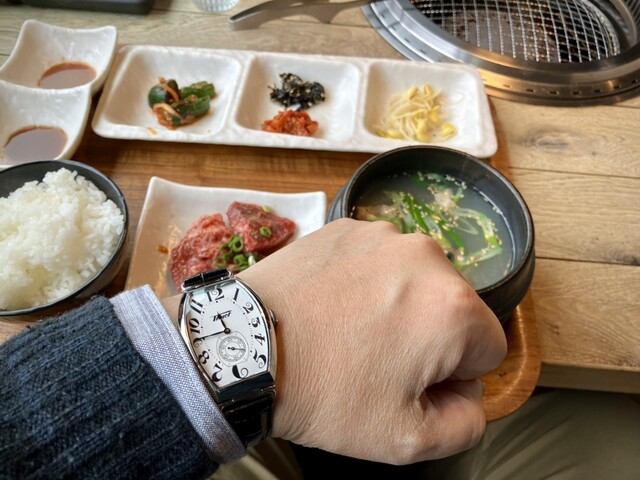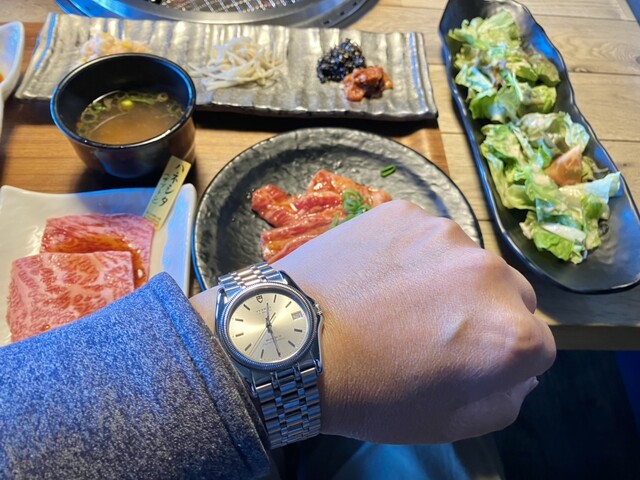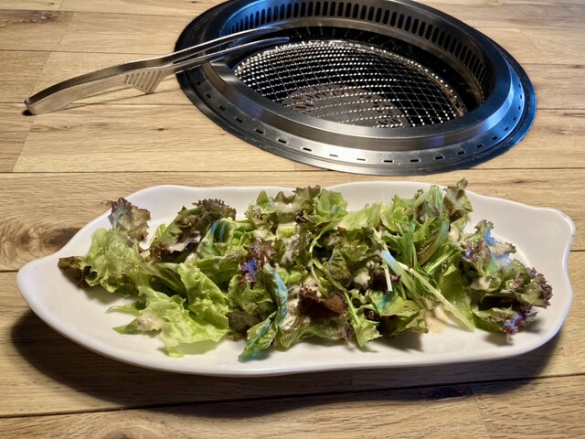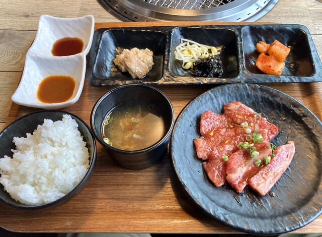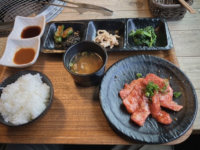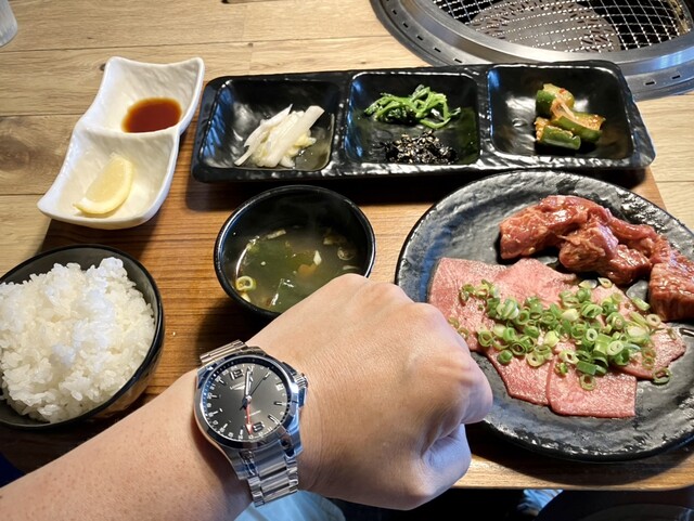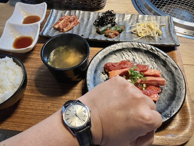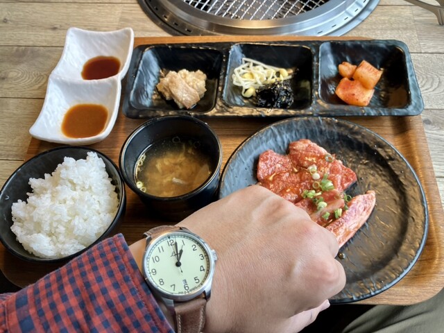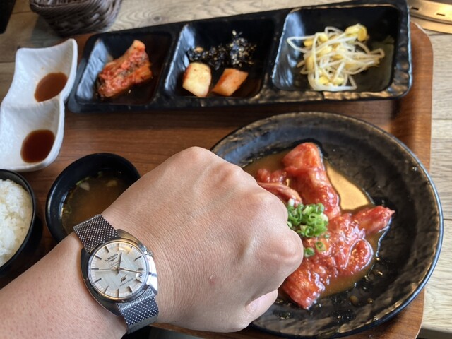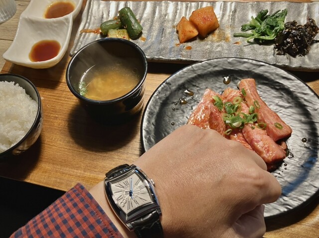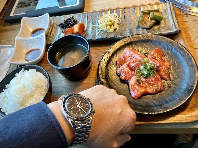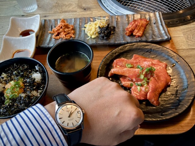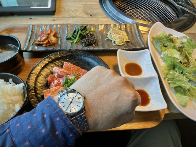 この日も予約なしで着席ができ、「中落ちカルビランチ(@1,100円税込)」をオーダー。既述のように、我々庶民が通常認識している千円前後のプライスレンジでランチとして提供される肉とは明らかにlevelが異なり、それらより二段階くらい上質なのではなかろうか。