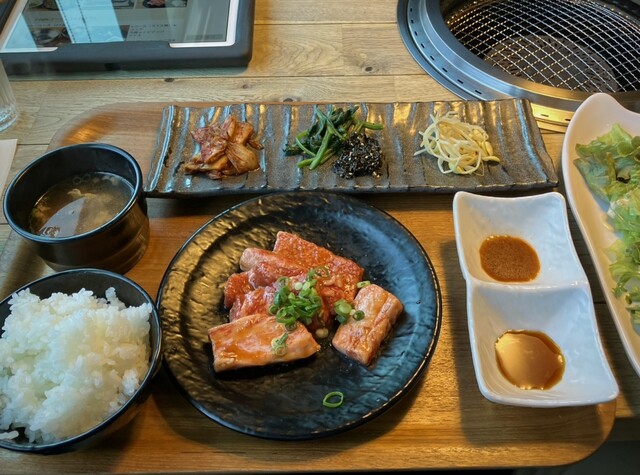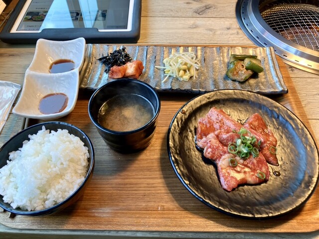 尤も、お盆の週はやはり平日であっても平日扱いとはならないようで、平日限定ランチメニューは端末に表示されず、全日用のランチメニューの中から「ネギ塩タン+ハラミ ランチ(@1,480円税込)」をオーダー。尚、ランチメニューは全てご飯のお代わりが自由というのも嬉しい。