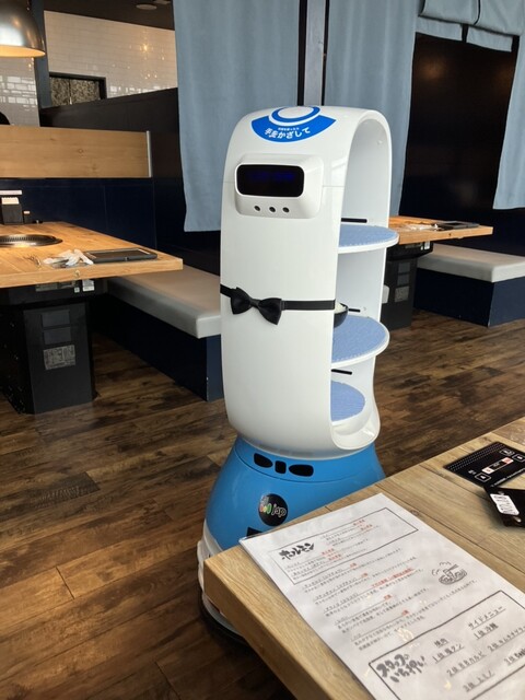 約10分程で自走式配膳ロボットがオーダー品を運んで来ます。上ミノだけは後で店員さんが持ってきてくれました。