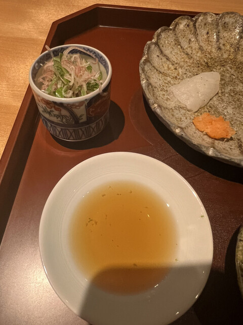 愛知の本ミル貝とワタリガニを薄く切って塩をして絞ったきゅうりを添えて、ワタリガニも身がしっかりしていて甘みもありきゅうりのコリコリした食感と土佐酢がアクセントになりよかったです。