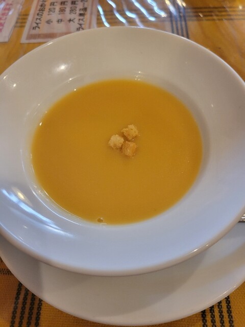 洋風セットにしたから、コーンクリームスープとサラダとご飯がきました。
