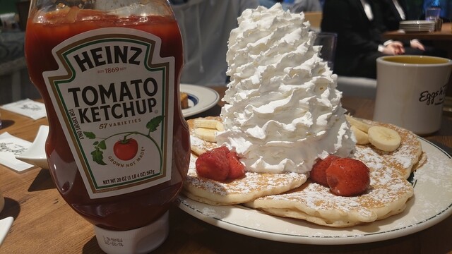 不思議なくらいパクパクと進む生クリームとパンケーキ。