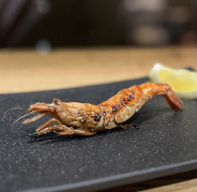 で、テンション上がって「白えびの塩焼き」を追加。兵庫県の北にある香住港でとれた「えび」と聞くだけでうまいに決まってるのですが、この見事なたたずまいと、上品なえび具合に、今日は満足です!