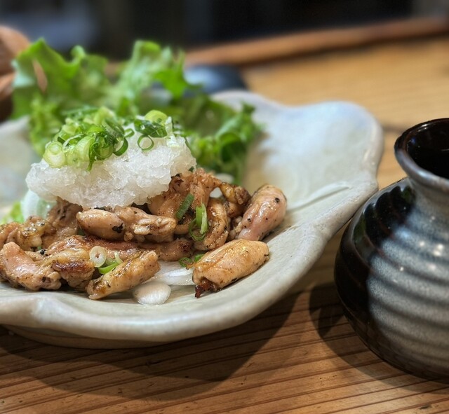 「せせりの塩焼きおろしポン酢」。これも夏にぴったり。やわらかい鳥の塩焼きをおろしポン酢でさっぱりといただけて、至福の時間