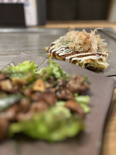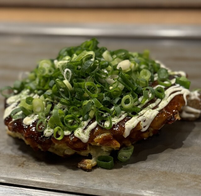 地下鉄 西大橋〜四ツ橋近くのグルメな街 新町にあるひいろさん。オシャレな店内と、熱々の鉄板で焼かれる「見てても楽しい」ステキなお店です。もんじゃ焼もきっと美味しんだろうけど、いつもたのんでしまうのは「豚カス玉(豚玉 油カス)」。カリふわのじっくり丁寧に焼かれたお好み焼き。油カスはカリしゅわで味わい深い。切り口がどうしてこんなキレイな断面になるのかは、、、きっとお店のこだわりたるものだと思います!ミックス焼きそばもバリうまです。キャベツ、玉ねぎ、もやし、ゲソ、エビ、豚 それぞれの旨味を絶妙なバランスで焼きあげているので、マジ旨いです。まだまだ語りたい、、