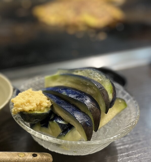 大阪のお好み焼き屋ではメニューに「水ナス」をよく見かけて、注文する方もたくさんいてるけど、こんなに鉄板に合うなんて(^O^)❒’’(^O^)❒’’(^O^)❒’’