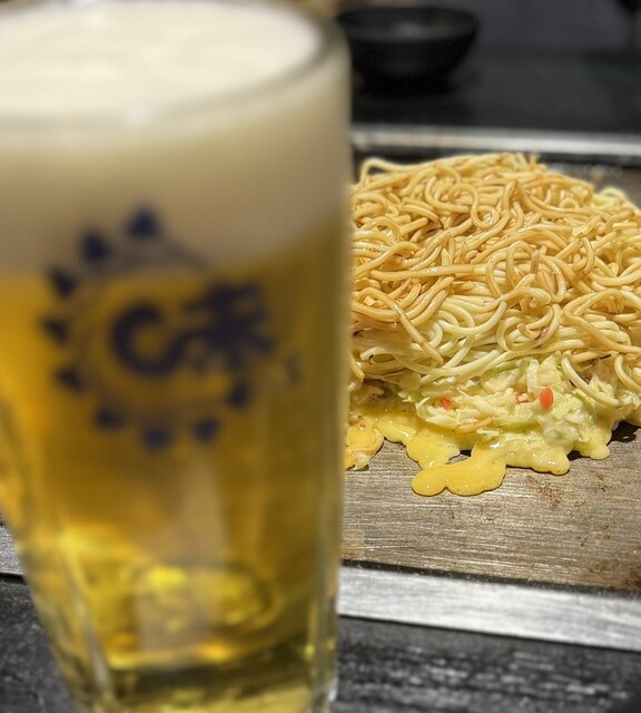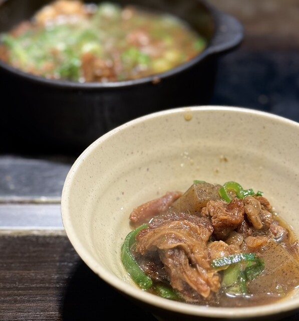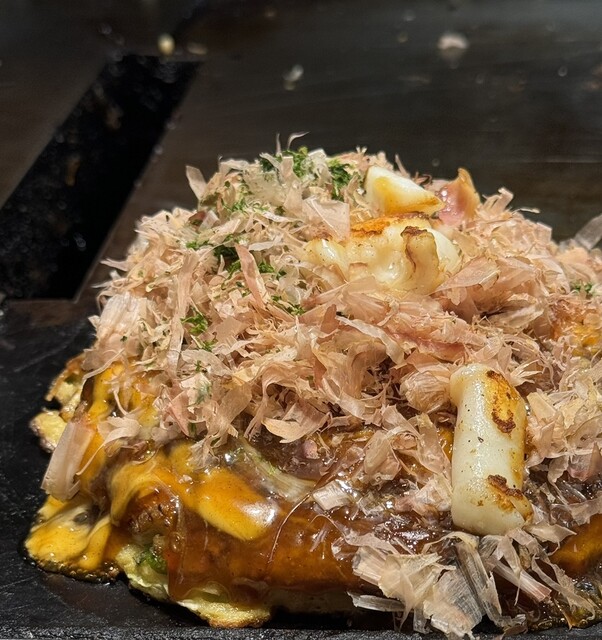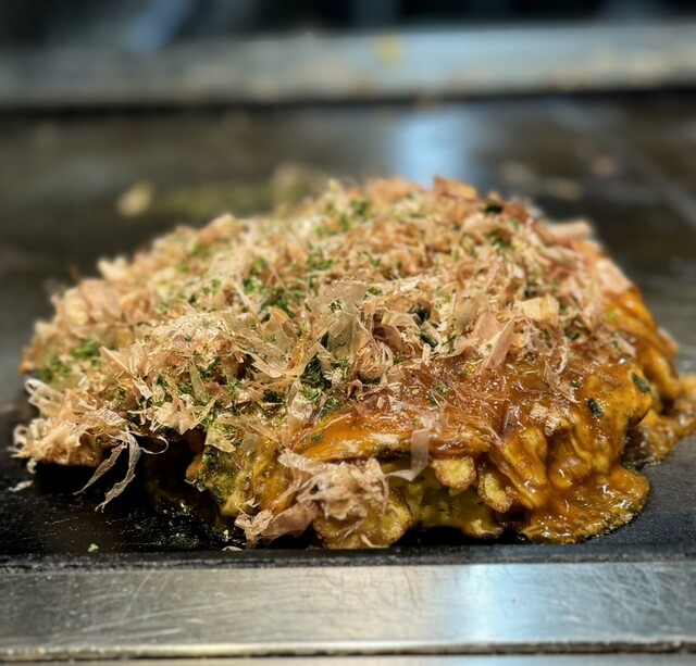 独特のソースの甘味。フワフワでいて、口いっぱいに広がる玉子の至福な香りがたまらん!この玉子感は唯一無二やね。オススメの一枚は「2トッピングの ’豚・ゲソ」ゲソのプリプリ感がいい。焼き上がるまでのビールのあては「牛スジ煮込み」!熱々トロトロ、コラーゲンの塊、コンニャクにも味のしゅんだすじ煮込みは入店前の注文に差し込んでおくべきマストメニューです(^O^)❒’’