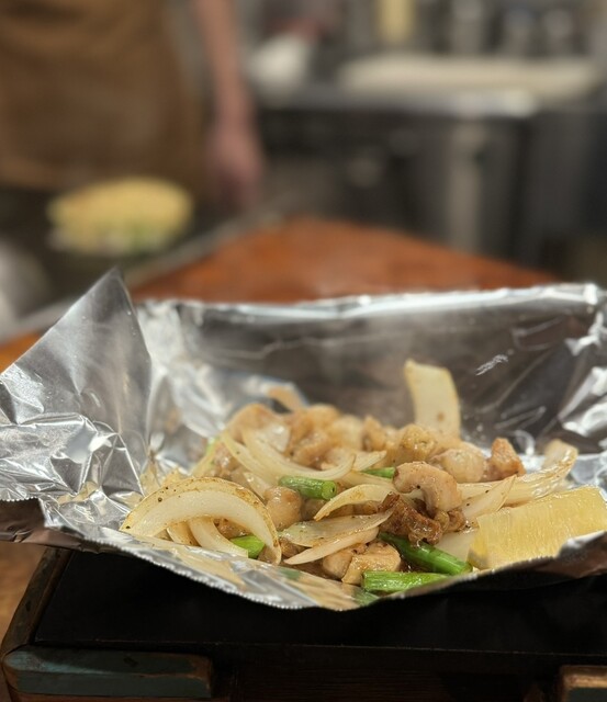 焼き上がりのフィニッシュにねぎ焼きにかけられる醤油の香りと、鉄板の上で蒸発して香る嗅覚への刺激!