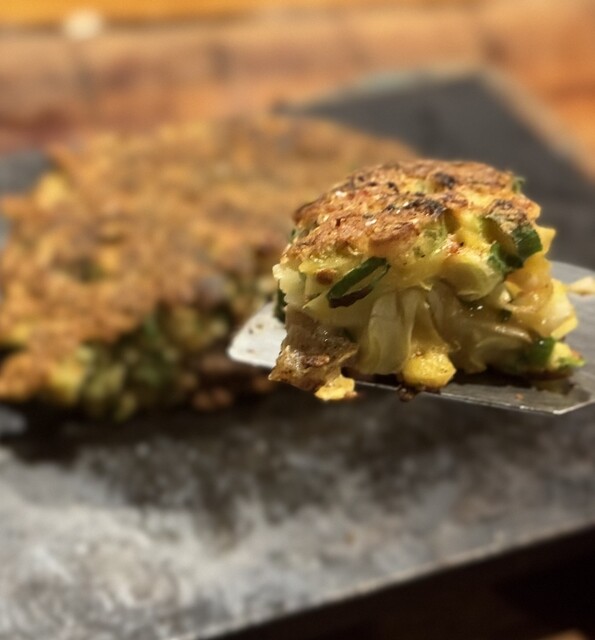カリッカリに焼かれた豚肉の旨味を吸ったねぎ焼き