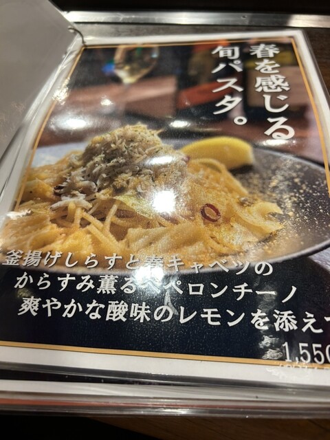 ⬜︎釜揚げしらす春キャベツからすみ薫るペペロンチーノ 爽やかな酸味のレモンを添えて
