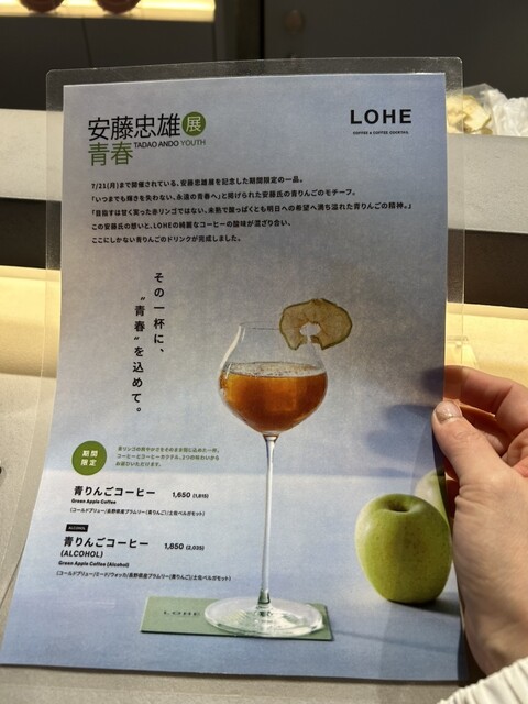 お目当ては期間限定の安藤忠雄展青春の青りんごコーヒー7月21日までとのことで来れて本当に良かったです。