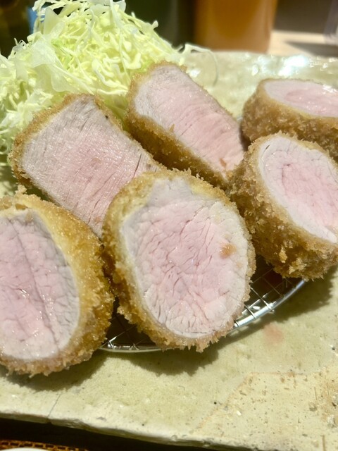 入口の受付簿に名前を書いて待機し、お目当ての「シャトンブリアンかつ定食(6切れ・税込2310円)」を注文。1頭から2食分ほどしか取れない希少なヒレ芯とのことで期待が高まります。少食なので当初は4切れにしようか迷いましたが、店員さんに勧められるまま6切れにした結果、これが大正解でした。