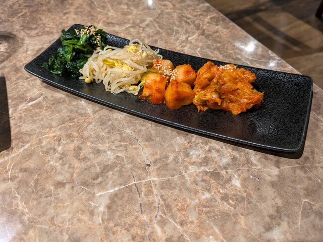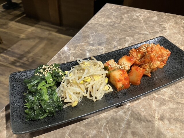 最初に出てきたキムチとナムルの盛り合わせで、まず食欲にスイッチON!
