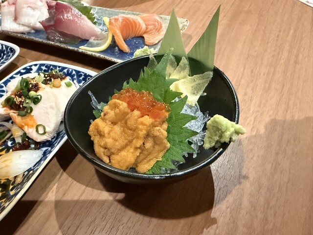まずはガリトマトからスタート。甘みのあるトマトにガリの風味が爽やかで、思っていた以上に後引くおいしさ。さっぱりしているのにクセになる感じで、最初の一品にぴったりでした。続いてウニを注文。ねっとり濃厚で、口に入れた瞬間ふわっと広がる旨みに思わず幸せな気分になった…!