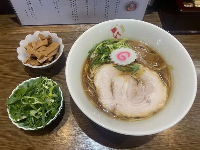 濃口醤油らーめん と たまり醤油らーめんで悩みましたが濃口醤油らーめんにすることとしました。それにネギとメンマをトッピング笑