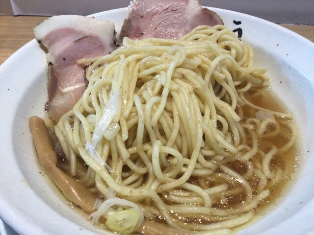 スープは貝系で、あさりやしじみなどの出汁がしっかりと出ていて、薄口の醤油を使っているのでしょうか、醤油は控えめの感じのかなり美味しいスープです