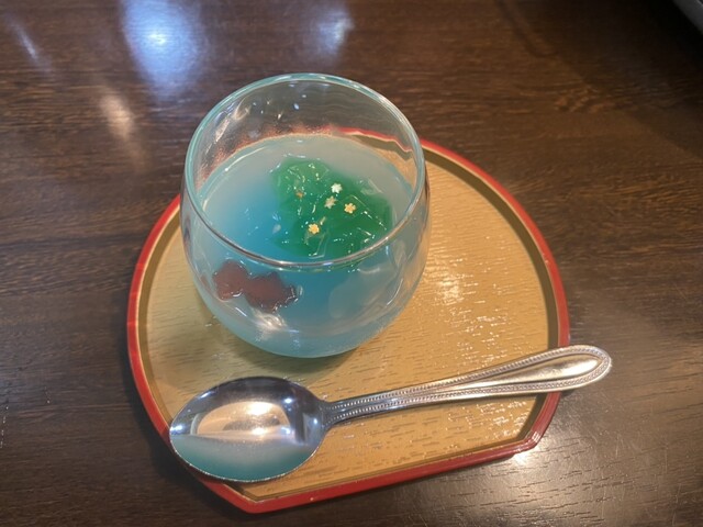柚子ゼリーですが色合いは綺麗、甘すぎずさっぱりしているのですがグラデーションの違う少し濃い場所などこれは感動でした。さすが元和菓子職人と感心しました。