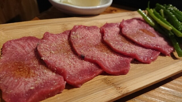 あとネギ塩!コレは外せませんね。レモン汁と特製ダレが絡まったネギをお肉の横で焼きながら一緒に頂くんですが、パンチの聞いた塩味でビールが進みます