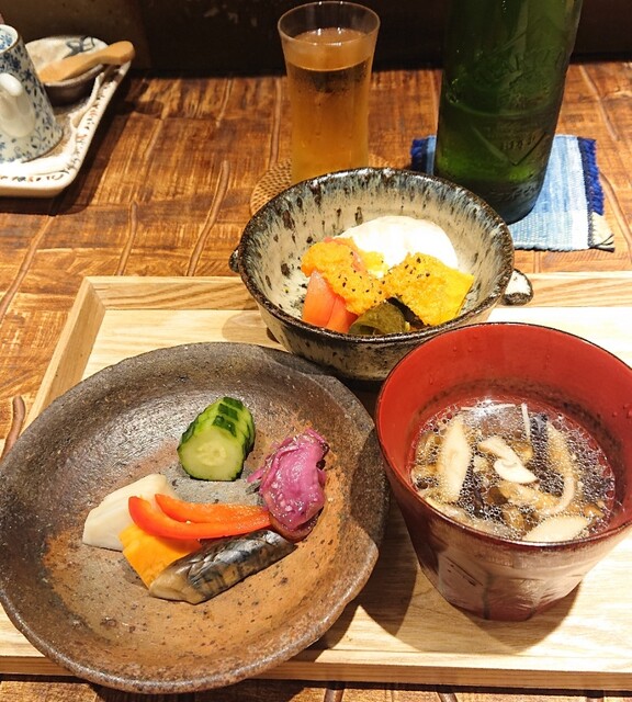お通しの糠漬けが大変美味しく、しっかり量もありますので、これは日本酒のつまみにとっておこう。。とお盆から除けておきます。