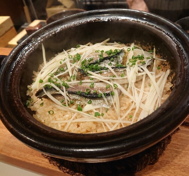 脂の乗った鰯は身もしっかり。千切りの生姜がすごく爽やかで魚の臭みは一切無し。 はぁ~本当に美味しい♪ お茶碗が空いたところに「もう少しどうですか?」と。 二人同時に「お願いします!」