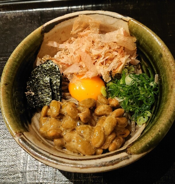大粒の納豆は濃厚で旨味が強く、トッピングはほかに海苔、ねぎ、鰹節、卵黄。あまりぐちゃぐちゃに混ぜずに頂きました。 かなり食べ応えあります。お蕎麦はコシがあり、濃厚な納豆の味にも消されることないさすが美味しいお蕎麦!