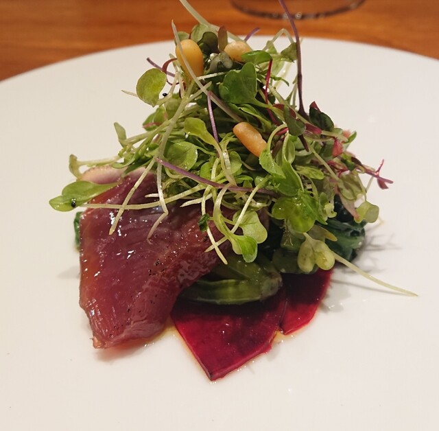 鰹の旨味と少しの酸味が本当に美味しい!ビーツの甘酸っぱいソースとの相性もなかなか◎
