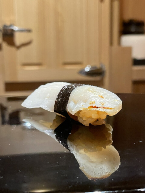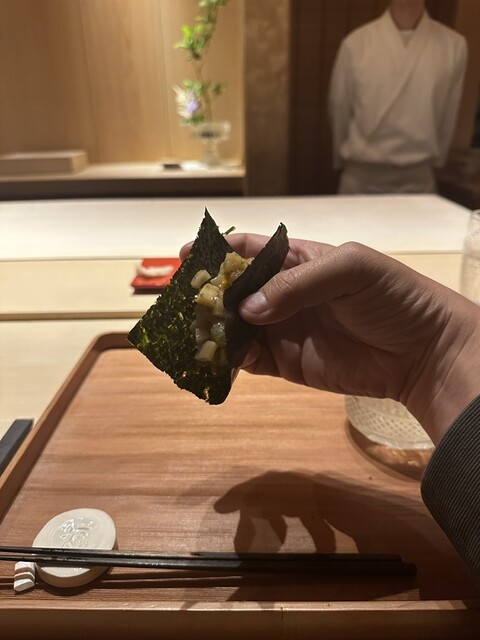♢帆立の湯葉巻き 行者ニンニクの醤油