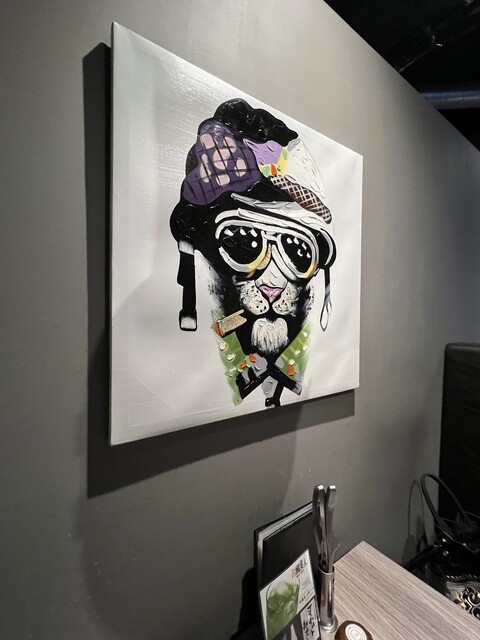 黒を基調とした店内はおしゃれなアートが飾ってあって雰囲気良ォ…