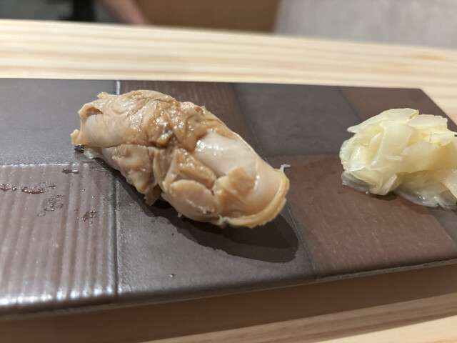 今度は県外から来た後輩と来店。はもやへしこ、花垣、白岳仙、白龍と頂き、待望の握りに!お昼の10貫とはネタと工夫が一重も二重も違う印象でした。私はノドグロの炙りと貝柱がとても気に入りました♪次はいつかな!