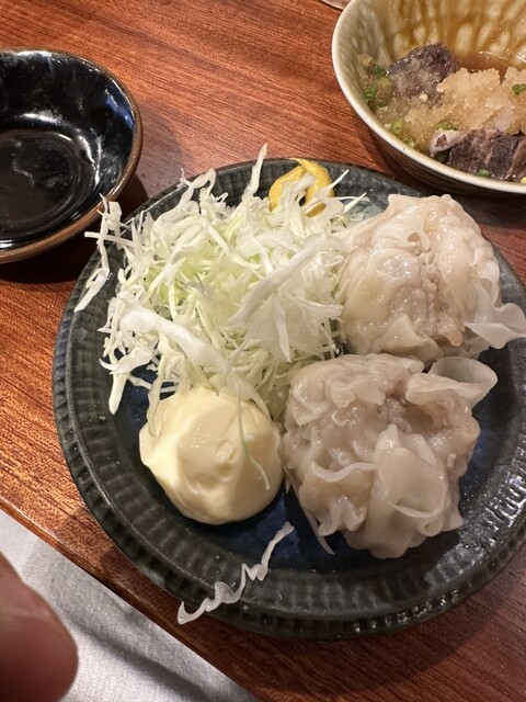 待ってる間にもつ煮込み、しゅうまい、たんしたポン酢。