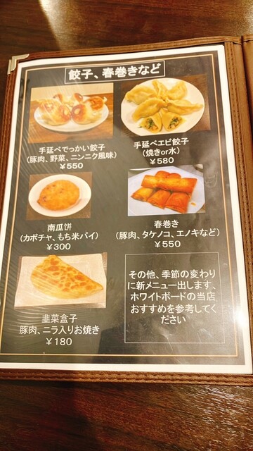 エビ餃子、もちもちで中身たっぷり、ずっしり。エビ、肉、にんにく?美味しい上にボリューム満載。正直、1人なら2個で300円ぐらいが嬉しいな。