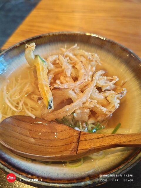 新中野駅近くの大通り沿いにある讃岐うどん店です。壁向かったカウンター席とテーブル席とに分かれてます。洒落た内装と落ち着くBGMがながれている居心地よい空間です。いりこ出汁のうどんでこれが抜群に味わいよく注文したかき揚げうどんの麺と融合してとても旨かったです。青ネギ、天かす取り放題で、いりこも皿に取り放題でサービスもとてもよいです。単品の各種天ぷらも美味しそうです。
