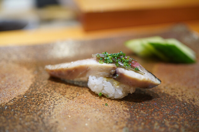 炙った鯖に茗荷と昆布、咀嚼して柚子胡椒と一体化した後の余韻が長し。