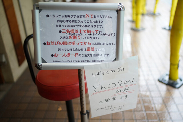 ラーメン2杯連食NG、追加麺の和え玉はOK。2杯食べたい方は再度の並べば大丈夫。