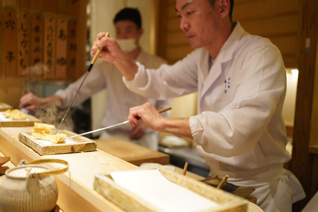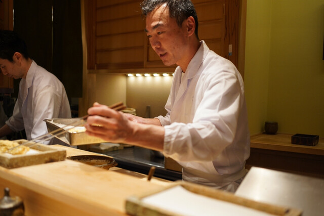 気を衒わず派手な事はせず、飄々と天ぷらを揚げる鈴木さん。