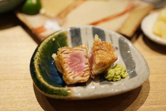 骨ごとカリカリに揚げられ、頭から尻尾まで頂けます。綺麗な油で揚げられてるので、淡白な身と混ざって本当に美味しい。。