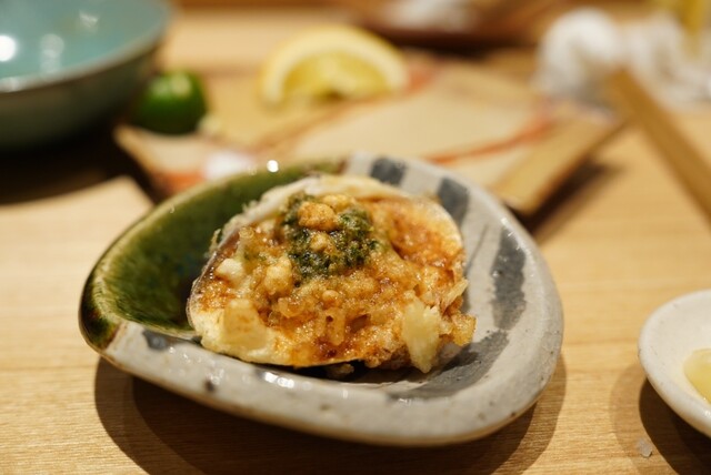 そばのかえしで頂く栄螺と銀宝。栄螺のワタの苦さで夏を実感。