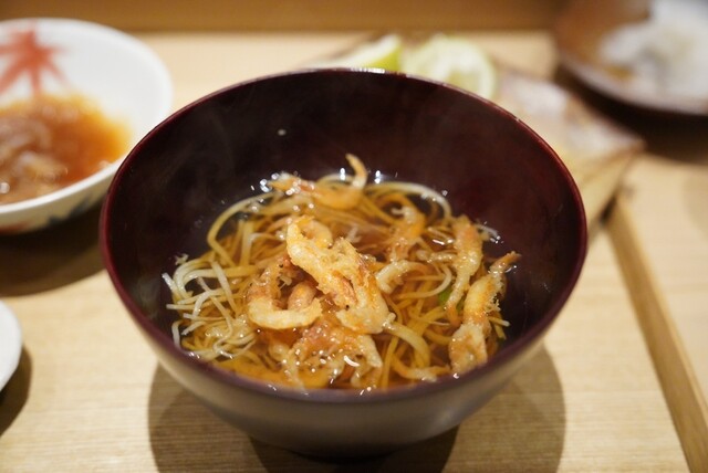 かけ蕎麦は桜海老バラ揚げと穴子。