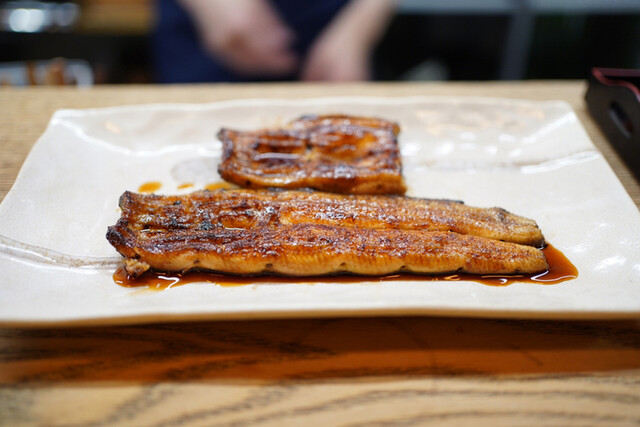 蒲焼きは養殖1人1尾、天然は1尾を3人で。
