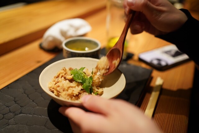 コースの最後は手羽飯。山椒の痺れ心地よく。