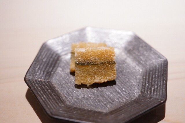 新イクラの時期でないのに、味の落とし込みが素敵。大体醤油漬けと相場が決まってるけど、少しの塩で増す卵の黄身のような丸み。
