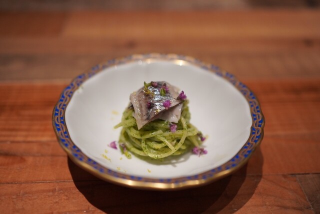 雲丹の爽やかなコクを合わせる、青い香りの二重奏。