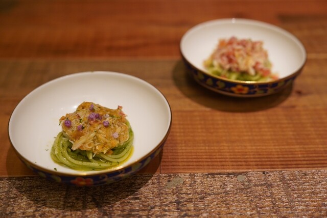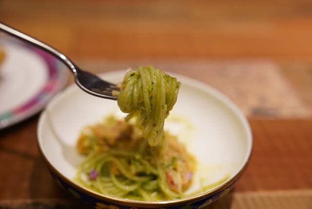定番冷製ジェノベーゼは雲丹と毛蟹で。