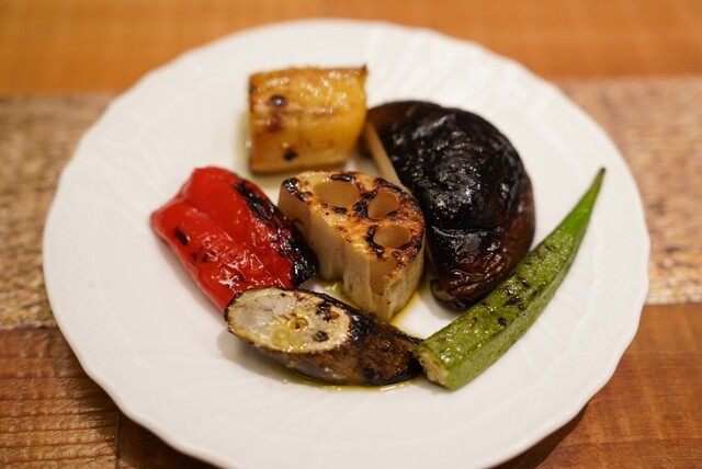 オリーブオイルを纏った定番炭火焼き野菜達。