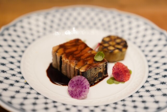 秋刀魚と秋茄子が綺麗にサンド。秋刀魚の脂と茄子にソースが合い過ぎる^ ^めっちゃ美味しい!