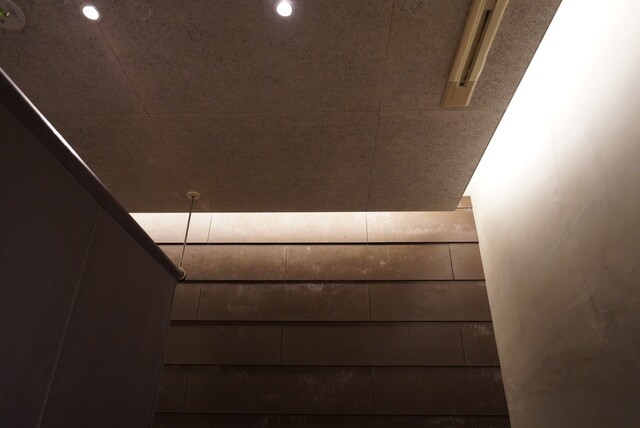 1Fには看板らしきものは無し。螺旋階段を降りて、三和の文字が見える。昔の銀行のような表札⁇。
