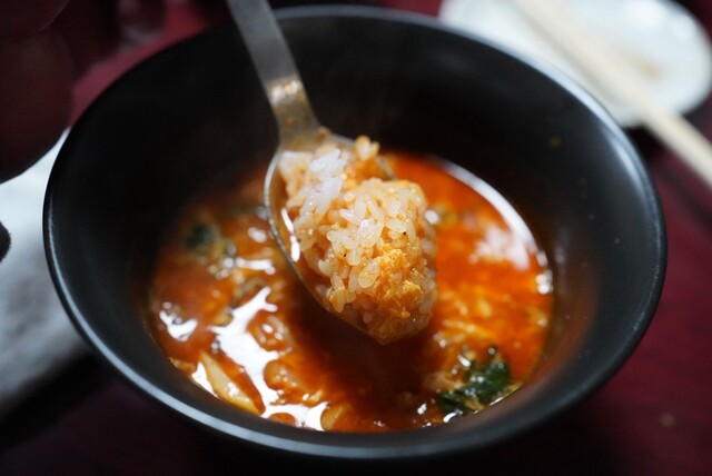 締めはテグタンスープ。小ライスお代わりしてクッパで。ご飯ある方が嬉しいね。