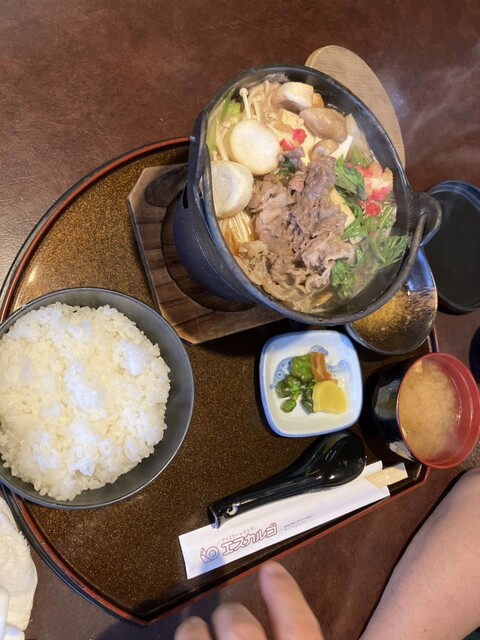旦那は、玄関に書かれていた おすすめのすき焼き定食。お肉が美味しかったそうです。